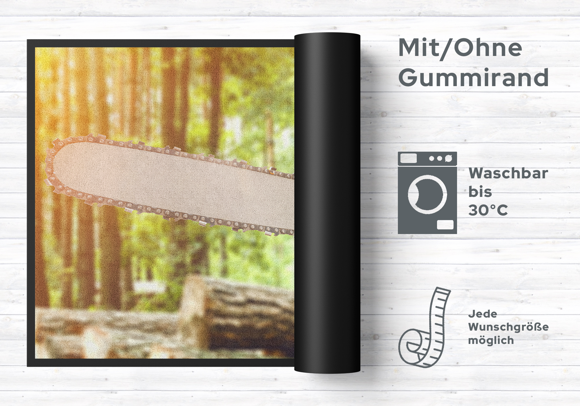 Mit dieser Fußmatte Motorsäge 10146 zaubern Sie nicht nur Ihren Besuchern ein Lächeln ins Gesicht. Diese sehr hochwertige Türmatte ist reissfest, knitterfrei, waschbar. Da sie mit 7 mm Gesamthöhe sehr flach ist, passt sie unter fast jede Tür. Die Fußmatte ist Schadstoffgeprüft und für Allergiker geeignet. Sie erhalten 5 Jahre Herstellergarantie.