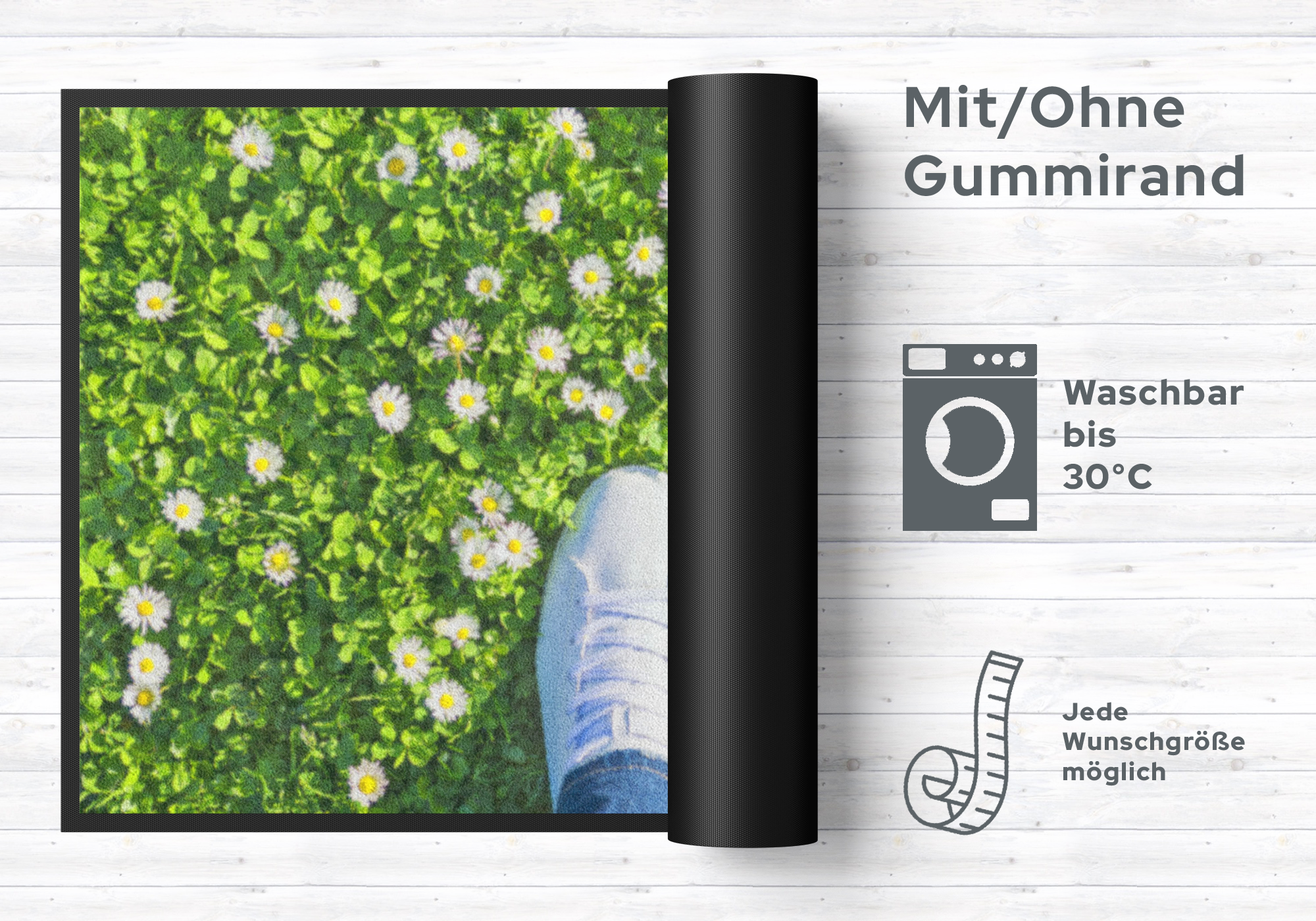 Mit dieser Fussmatte 4822 zaubern Sie nicht nur Ihren Besuchern ein Lächeln ins Gesicht. Diese sehr hochwertige Türmatte ist reissfest, knitterfrei, waschbar. Da sie mit 7 mm Gesamthöhe sehr flach ist, passt sie unter fast jede Tür. Die Fussmatte ist Schadstoffgeprüft und für Allergiker geeignet. Sie erhalten 5 Jahre Herstellergarantie.