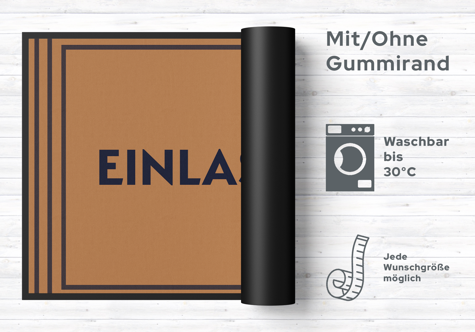 Pflegetipps: Waschen Sie die Fußmatte 10601 separat bei 40° Temperatur mit Feinwaschmittel, schleudern diese auf niedriger Stufe, dadurch richten sich die Fasern auf, der Mattenflor wird aktiviert und transportbedingte Falten und Knicke werden wieder glatt. Pflegen Sie so Ihre Fußmatte regelmäßig und Sie werden überrascht sein, wie viele Jahre Qualität und Farbe erhalten bleiben. Rückgaberecht ausgeschlossen, da es sich um eine individuelle Fussmatte handelt.