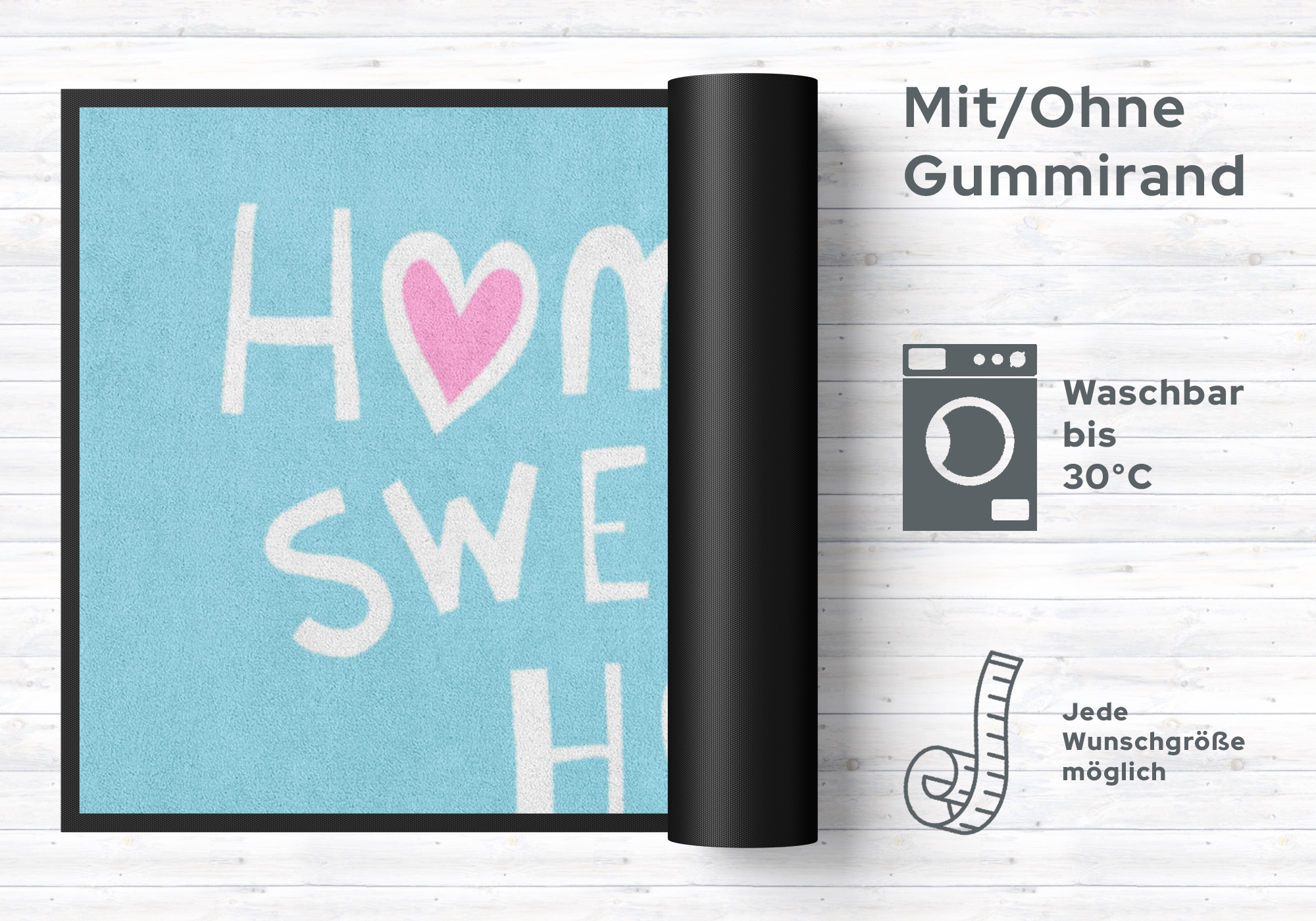 Mit dieser Fussmatte 4750 zaubern Sie nicht nur Ihren Besuchern ein Lächeln ins Gesicht. Diese sehr hochwertige Türmatte ist reissfest, knitterfrei, waschbar. Da sie mit 7 mm Gesamthöhe sehr flach ist, passt sie unter fast jede Tür. Die Fussmatte ist Schadstoffgeprüft und für Allergiker geeignet. Sie erhalten 5 Jahre Herstellergarantie.