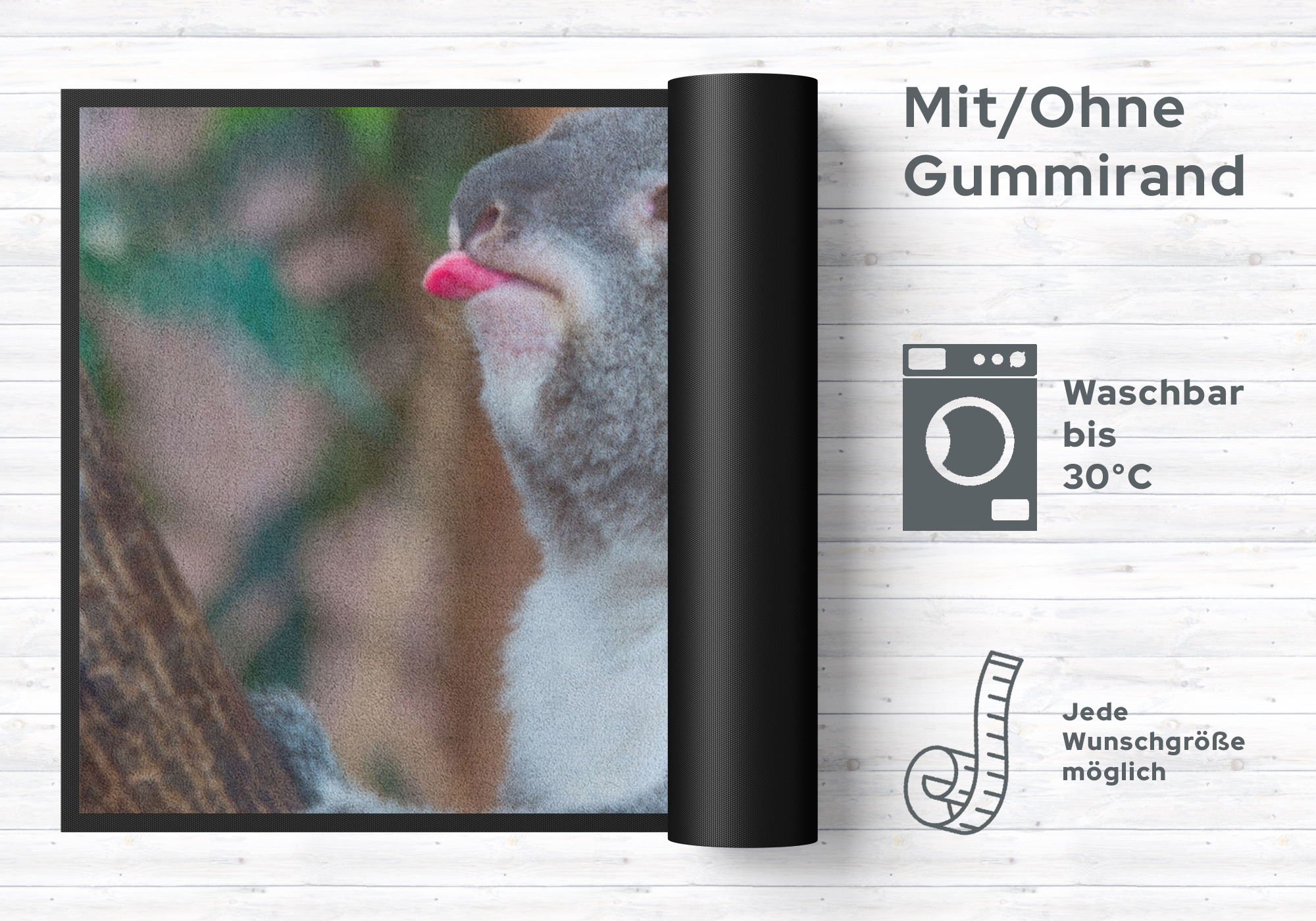 Mit dieser Fussmatte Koala 4813 zaubern Sie nicht nur Ihren Besuchern ein Lächeln ins Gesicht. Diese sehr hochwertige Türmatte ist reissfest, knitterfrei, waschbar. Da sie mit 7 mm Gesamthöhe sehr flach ist, passt sie unter fast jede Tür. Die Fussmatte ist Schadstoffgeprüft und für Allergiker geeignet. Sie erhalten 5 Jahre Herstellergarantie.