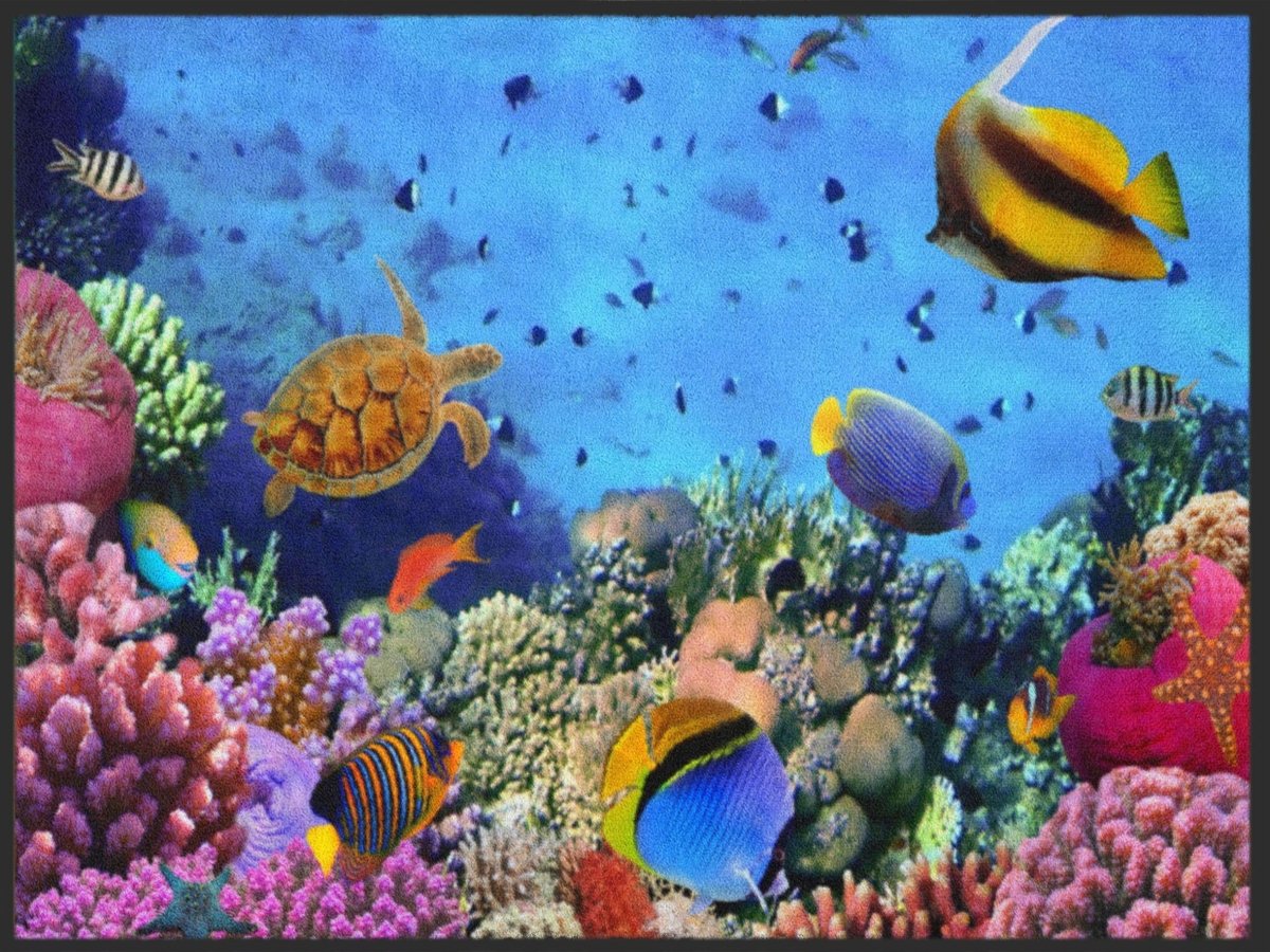 Mit dieser Fussmatte Unterwasser 4874 zaubern Sie nicht nur Ihren Besuchern ein Lächeln ins Gesicht. Diese sehr hochwertige Türmatte ist reissfest, knitterfrei, waschbar. Da sie mit 7 mm Gesamthöhe sehr flach ist, passt sie unter fast jede Tür. Die Fussmatte ist Schadstoffgeprüft und für Allergiker geeignet. Sie erhalten 5 Jahre Herstellergarantie.