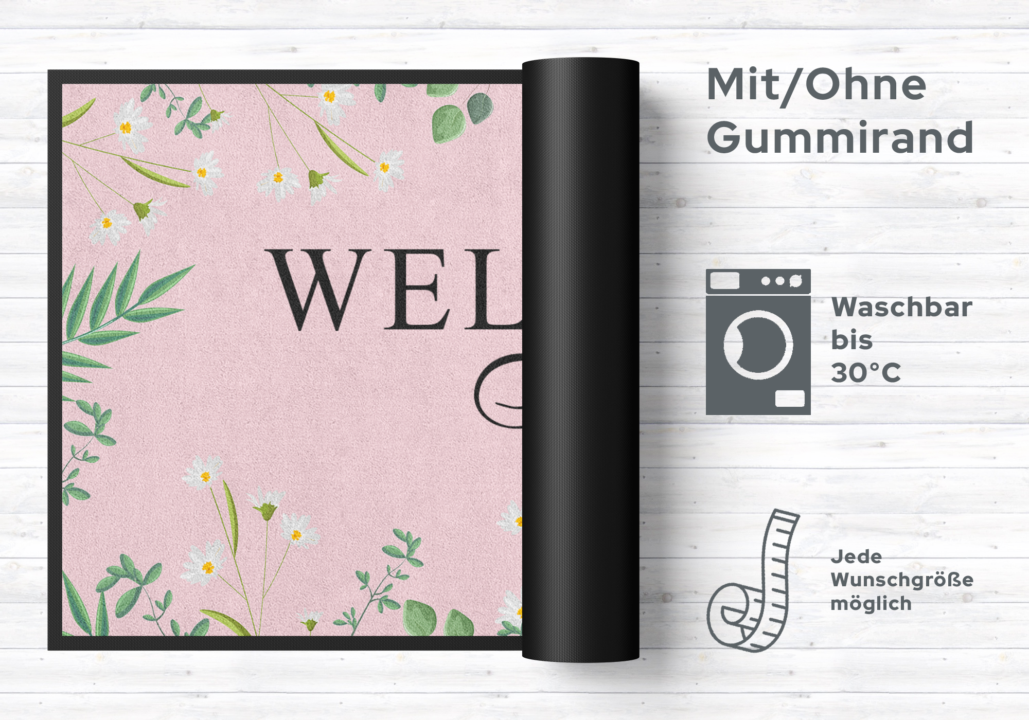 Pflegetipps: Waschen Sie die Fußmatte Welcome Home 10486 separat bei 40° Temperatur mit Feinwaschmittel, schleudern diese auf niedriger Stufe, dadurch richten sich die Fasern auf, der Mattenflor wird aktiviert und transportbedingte Falten und Knicke werden wieder glatt. Pflegen Sie so Ihre Fußmatte regelmäßig und Sie werden überrascht sein, wie viele Jahre Qualität und Farbe erhalten bleiben. Rückgaberecht ausgeschlossen, da es sich um eine individuelle Fussmatte handelt.