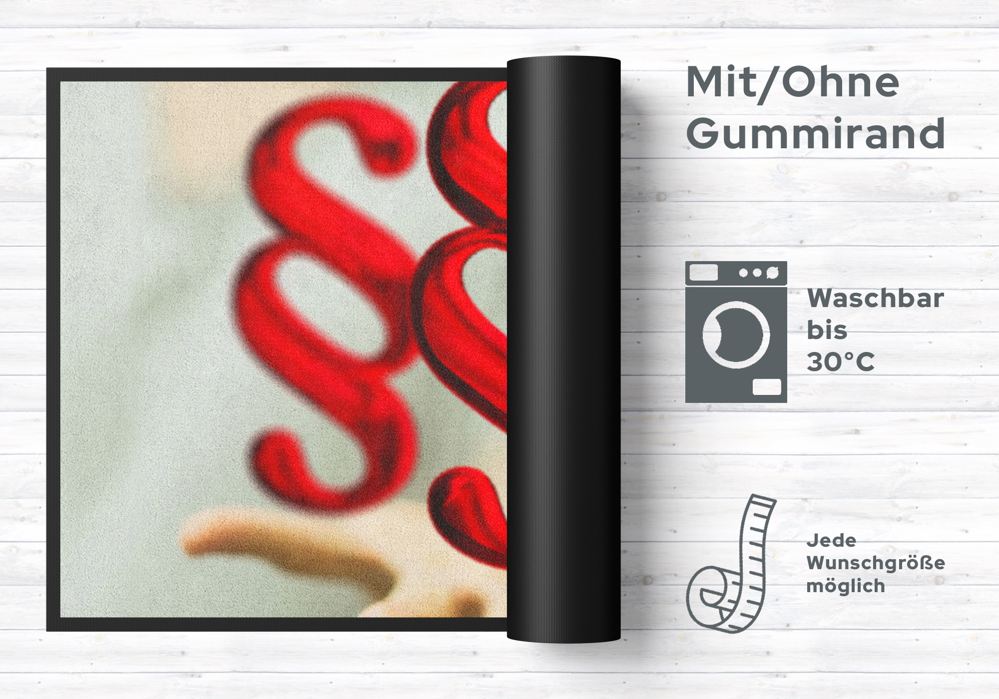 Mit dieser Fussmatte Anwalt 5087 zaubern Sie nicht nur Ihren Besuchern ein Lächeln ins Gesicht. Diese sehr hochwertige Türmatte ist reissfest, knitterfrei, waschbar. Da sie mit 7-8 mm Gesamthöhe sehr flach ist, passt sie unter fast jede Tür. Die Fussmatte ist Schadstoffgeprüft und für Allergiker geeignet. Sie erhalten 5 Jahre Herstellergarantie.