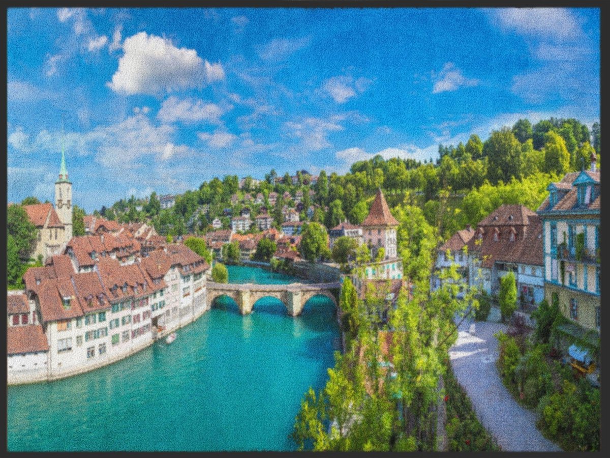Mit dieser Fussmatte Bern 4965 zaubern Sie nicht nur Ihren Besuchern ein Lächeln ins Gesicht. Diese sehr hochwertige Türmatte ist reissfest, knitterfrei, waschbar. Da sie mit 7 mm Gesamthöhe sehr flach ist, passt sie unter fast jede Tür. Die Fussmatte ist Schadstoffgeprüft und für Allergiker geeignet. Sie erhalten 5 Jahre Herstellergarantie.