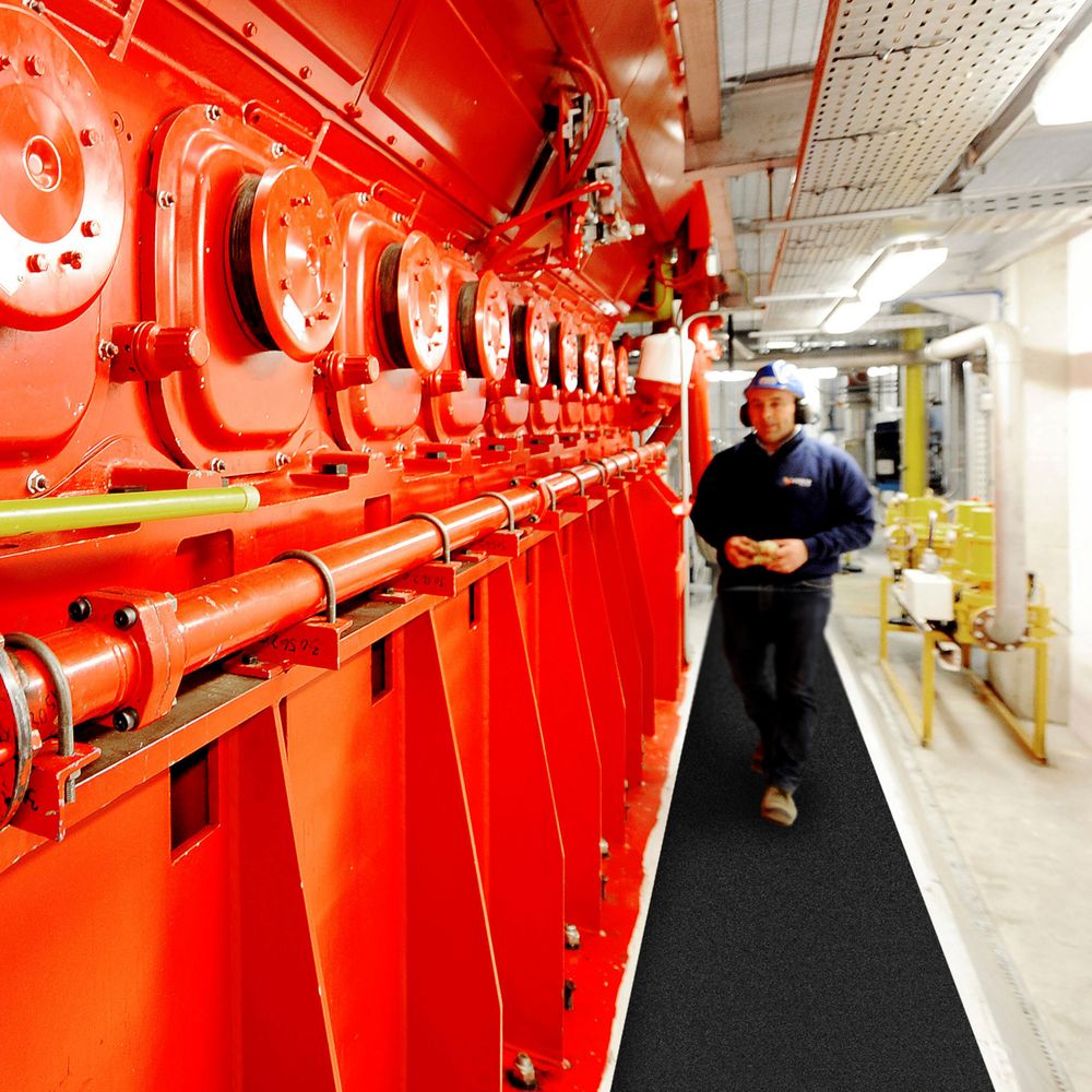 Dünne Anti-Rutsch Matte um die Sicherheit in rutschigen Arbeitsbereichen zu verbessern. Kein Gleiten, gibt Treibfähigkeit und verhindert die Verschiebung der Matte. Niedriges Profil für einfache Befahrbarkeit. Freiliegend für schnelle und einfache Anti-Rutsch Lösung. Leichtes Gewicht ermöglicht Heben und Reinigen der Matte durch Auf-und Abrollen.