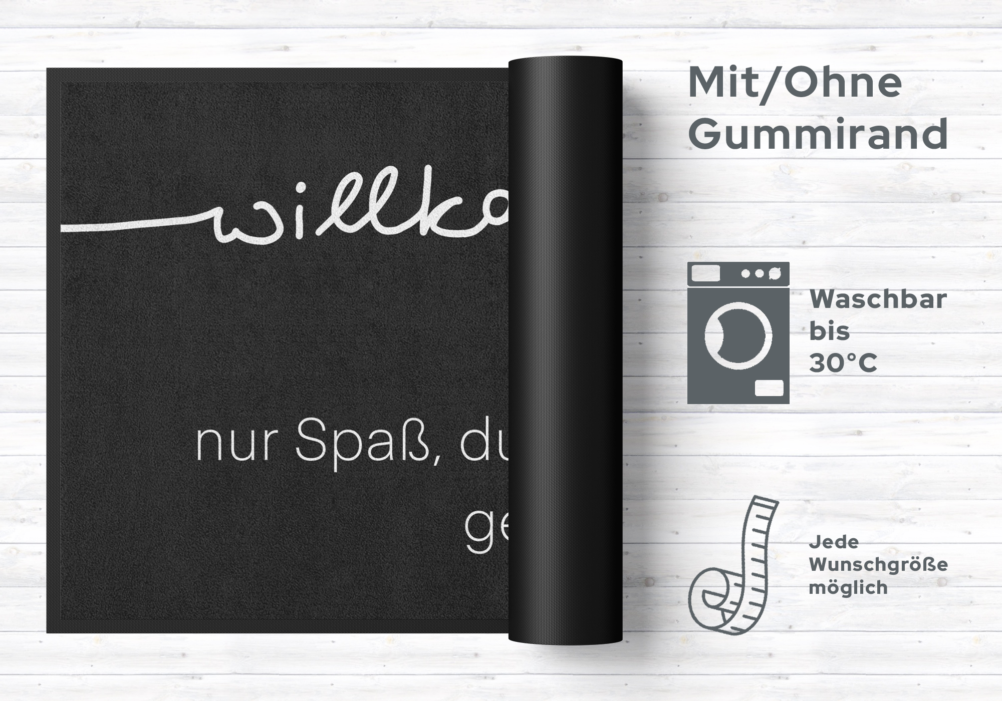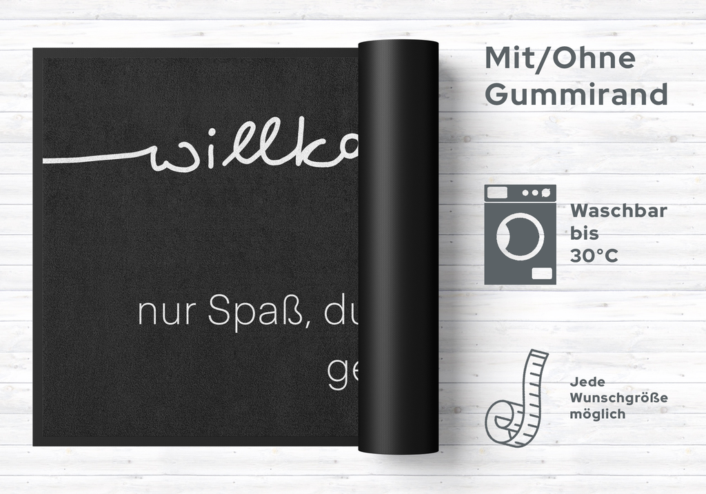 Mit dieser Fussmatte 10344 zaubern Sie nicht nur Ihren Besuchern ein Lächeln ins Gesicht. Diese sehr hochwertige Türmatte ist reissfest, knitterfrei, waschbar. Da sie mit 7 mm Gesamthöhe sehr flach ist, passt sie unter fast jede Tür. Die Fußmatte ist Schadstoffgeprüft und für Allergiker geeignet. Sie erhalten 5 Jahre Herstellergarantie.