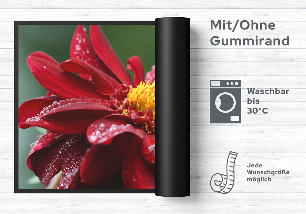 Pflegetipps: Waschen Sie die Fußmatte 10542 separat bei 40° Temperatur mit Feinwaschmittel, schleudern diese auf niedriger Stufe, dadurch richten sich die Fasern auf, der Mattenflor wird aktiviert und transportbedingte Falten und Knicke werden wieder glatt. Pflegen Sie so Ihre Fußmatte regelmäßig und Sie werden überrascht sein, wie viele Jahre Qualität und Farbe erhalten bleiben. Rückgaberecht ausgeschlossen, da es sich um eine individuelle Fussmatte handelt.