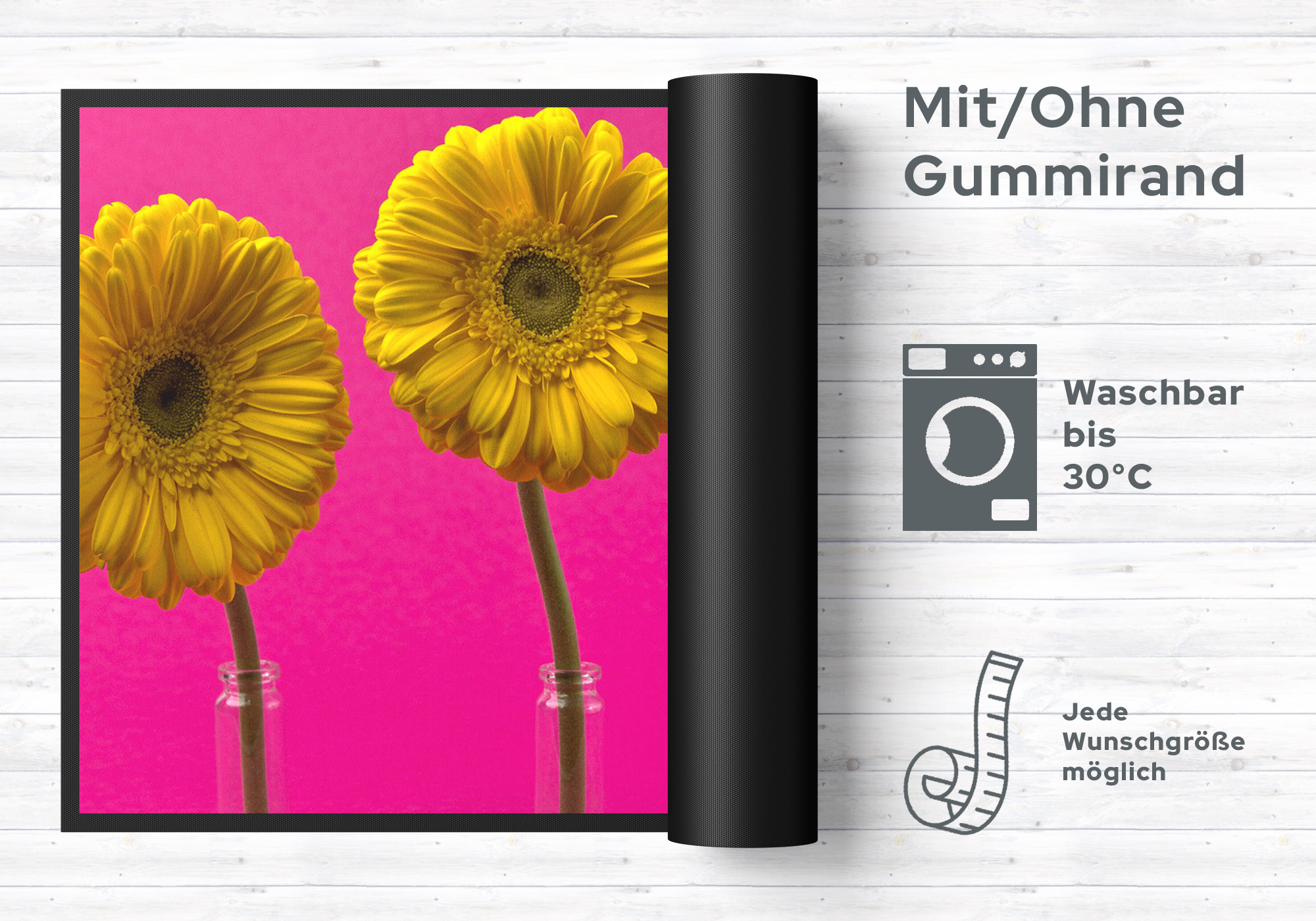 Pflegetipps: Waschen Sie die Fußmatte 10557 separat bei 40° Temperatur mit Feinwaschmittel, schleudern diese auf niedriger Stufe, dadurch richten sich die Fasern auf, der Mattenflor wird aktiviert und transportbedingte Falten und Knicke werden wieder glatt. Pflegen Sie so Ihre Fußmatte regelmäßig und Sie werden überrascht sein, wie viele Jahre Qualität und Farbe erhalten bleiben. Rückgaberecht ausgeschlossen, da es sich um eine individuelle Fussmatte handelt.