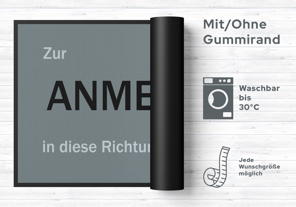 Pflegetipps: Waschen Sie die Fußmatte 10623 separat bei 40° Temperatur mit Feinwaschmittel, schleudern diese auf niedriger Stufe, dadurch richten sich die Fasern auf, der Mattenflor wird aktiviert und transportbedingte Falten und Knicke werden wieder glatt. Pflegen Sie so Ihre Fußmatte regelmäßig und Sie werden überrascht sein, wie viele Jahre Qualität und Farbe erhalten bleiben. Rückgaberecht ausgeschlossen, da es sich um eine individuelle Fussmatte handelt.