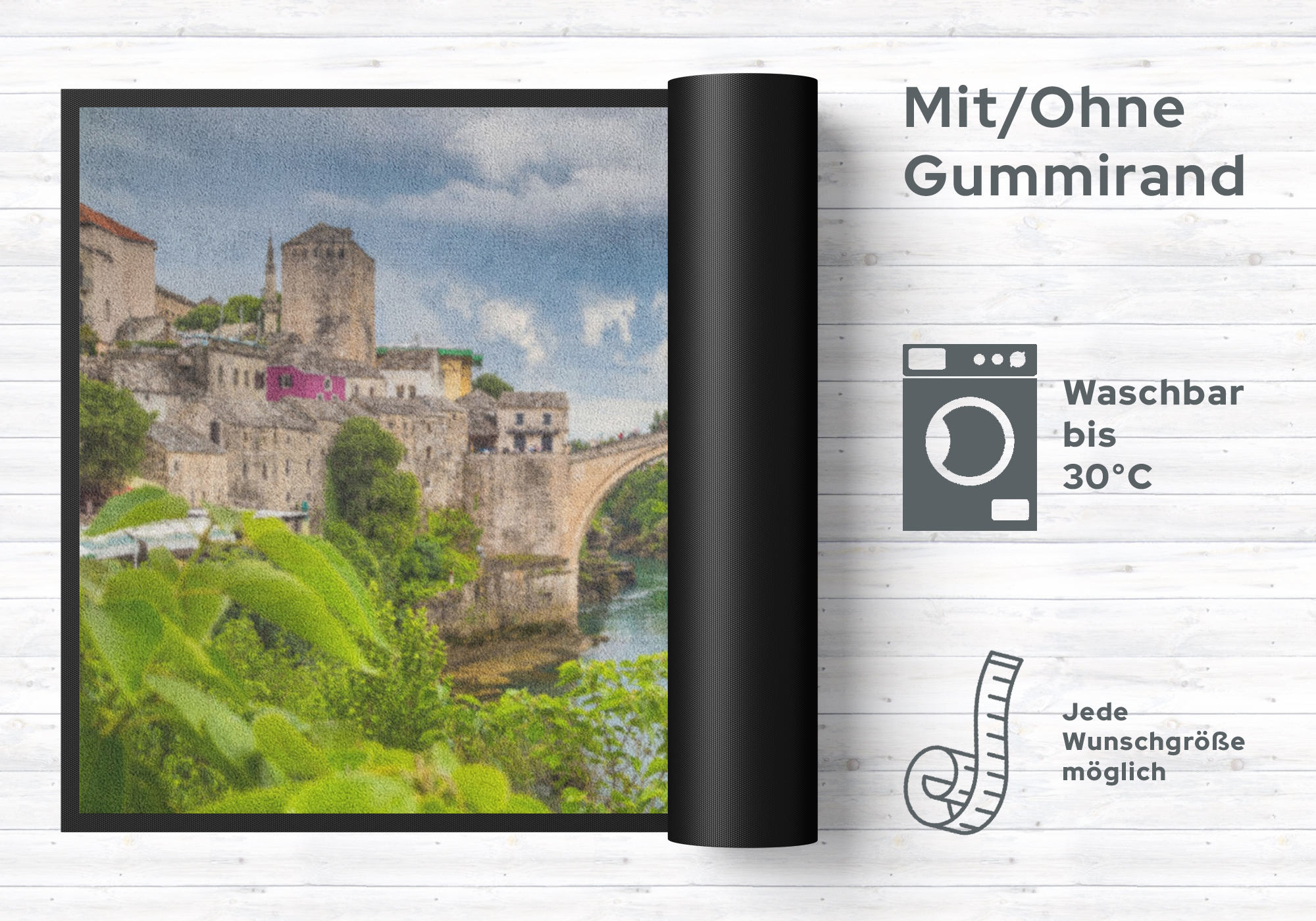 Mit dieser Fußmatte 4490 zaubern Sie nicht nur Ihren Besuchern ein Lächeln ins Gesicht. Diese sehr hochwertige Türmatte ist reissfest, knitterfrei, waschbar. Da sie mit 7 mm Gesamthöhe sehr flach ist, passt sie unter fast jede Tür. Die Fußmatte ist Schadstoffgeprüft und für Allergiker geeignet. Sie erhalten 5 Jahre Herstellergarantie.