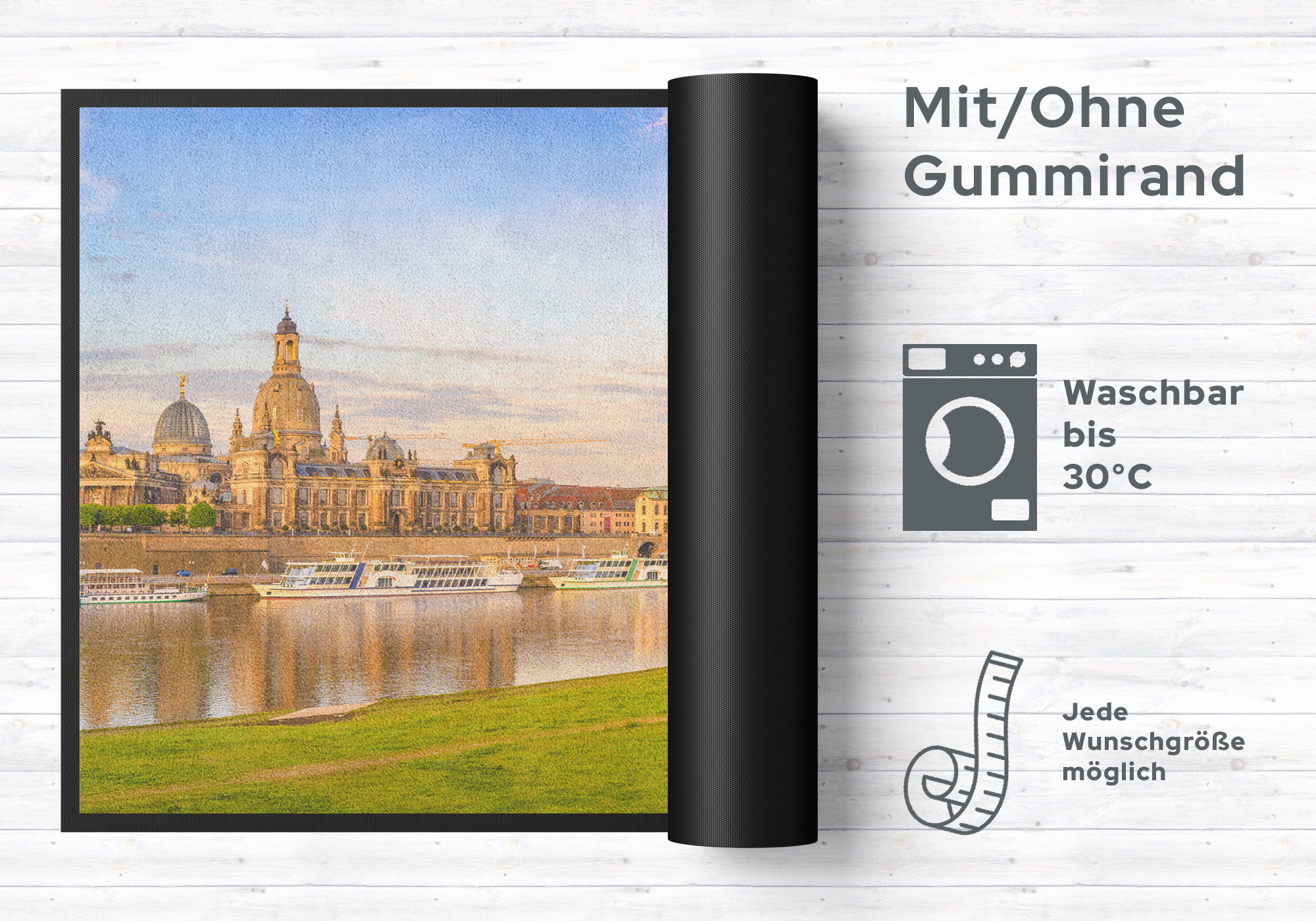 Mit dieser Fussmatte Dresden 10335 zaubern Sie nicht nur Ihren Besuchern ein Lächeln ins Gesicht. Diese sehr hochwertige Türmatte ist reissfest, knitterfrei, waschbar. Da sie mit 7 mm Gesamthöhe sehr flach ist, passt sie unter fast jede Tür. Die Fussmatte ist Schadstoffgeprüft und für Allergiker geeignet. Sie erhalten 5 Jahre Herstellergarantie.