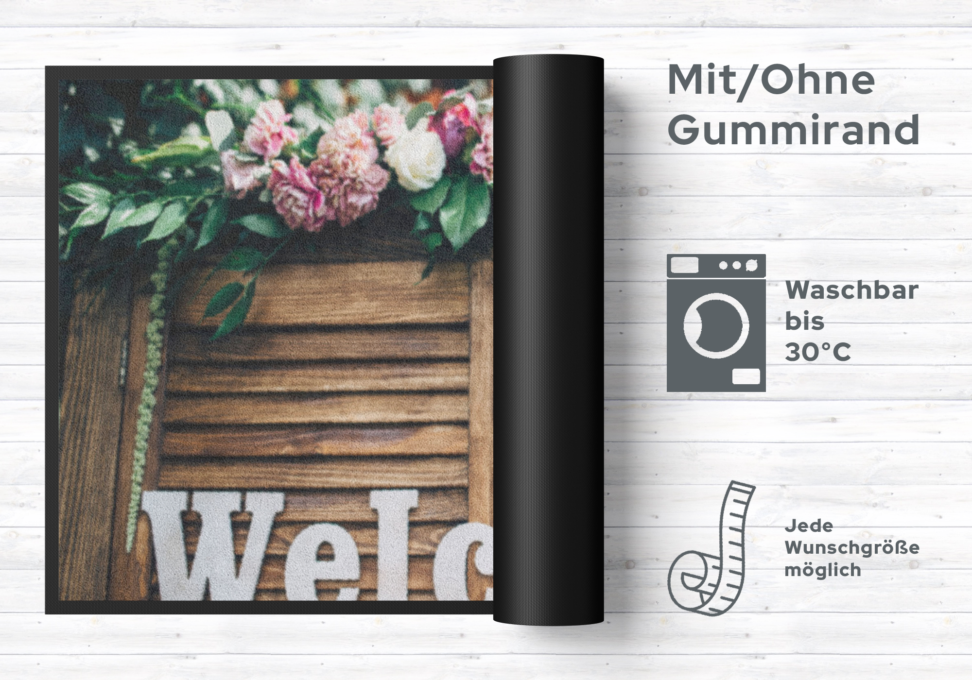 Mit dieser Fussmatte 4776 zaubern Sie nicht nur Ihren Besuchern ein Lächeln ins Gesicht. Diese sehr hochwertige Türmatte ist reissfest, knitterfrei, waschbar. Da sie mit 7 mm Gesamthöhe sehr flach ist, passt sie unter fast jede Tür. Die Fussmatte ist Schadstoffgeprüft und für Allergiker geeignet. Sie erhalten 5 Jahre Herstellergarantie.