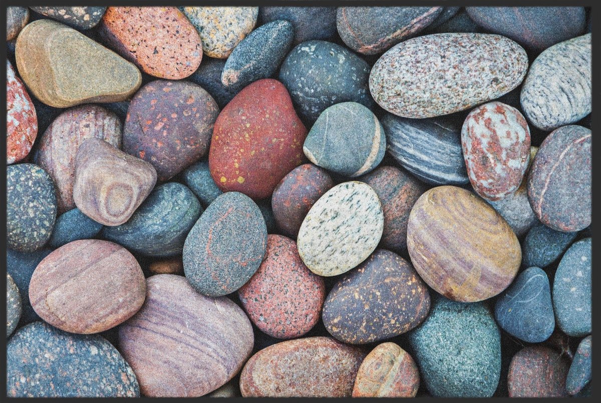 Mit dieser Fussmatte Steine 10154 zaubern Sie nicht nur Ihren Besuchern ein Lächeln ins Gesicht. Diese sehr hochwertige Türmatte ist reissfest, knitterfrei, waschbar. Da sie mit 7 mm Gesamthöhe sehr flach ist, passt sie unter fast jede Tür. Die Fussmatte ist Schadstoffgeprüft und für Allergiker geeignet. Sie erhalten 5 Jahre Herstellergarantie.