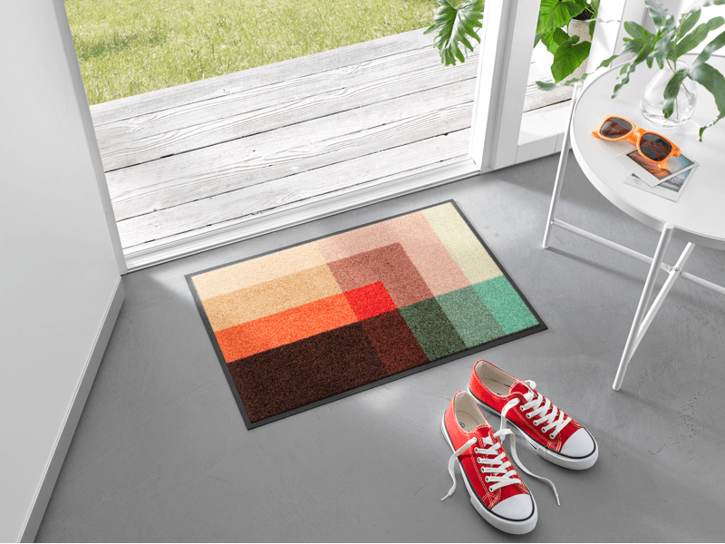 wash+dry Fußmatten sind vielseitig, da sie im Innen- wie im überdachten Außenbereich für Hygiene und Farbakzente sorgen. Die Fußmatte ist auf allen sauberen, trockenen und unbehandelten Böden rutschfest und hervorragend einsetzbar.