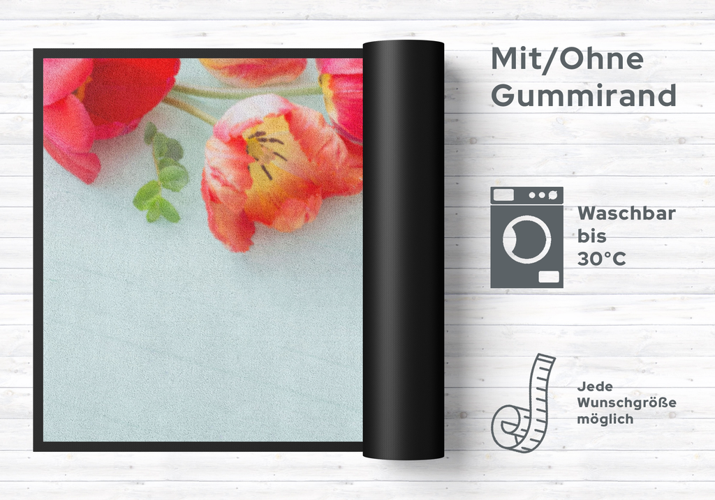 Pflegetipps: Waschen Sie die Fussmatte separat bei 40° Temperatur mit Feinwaschmittel, schleudern diese auf niedriger Stufe, dadurch richten sich die Fasern auf, der Mattenflor wird aktiviert und transportbedingte Falten und Knicke werden wieder glatt. Pflegen Sie so Ihre Fussmatte regelmäßig und Sie werden überrascht sein, wie viele Jahre Qualität und Farbe erhalten bleiben.